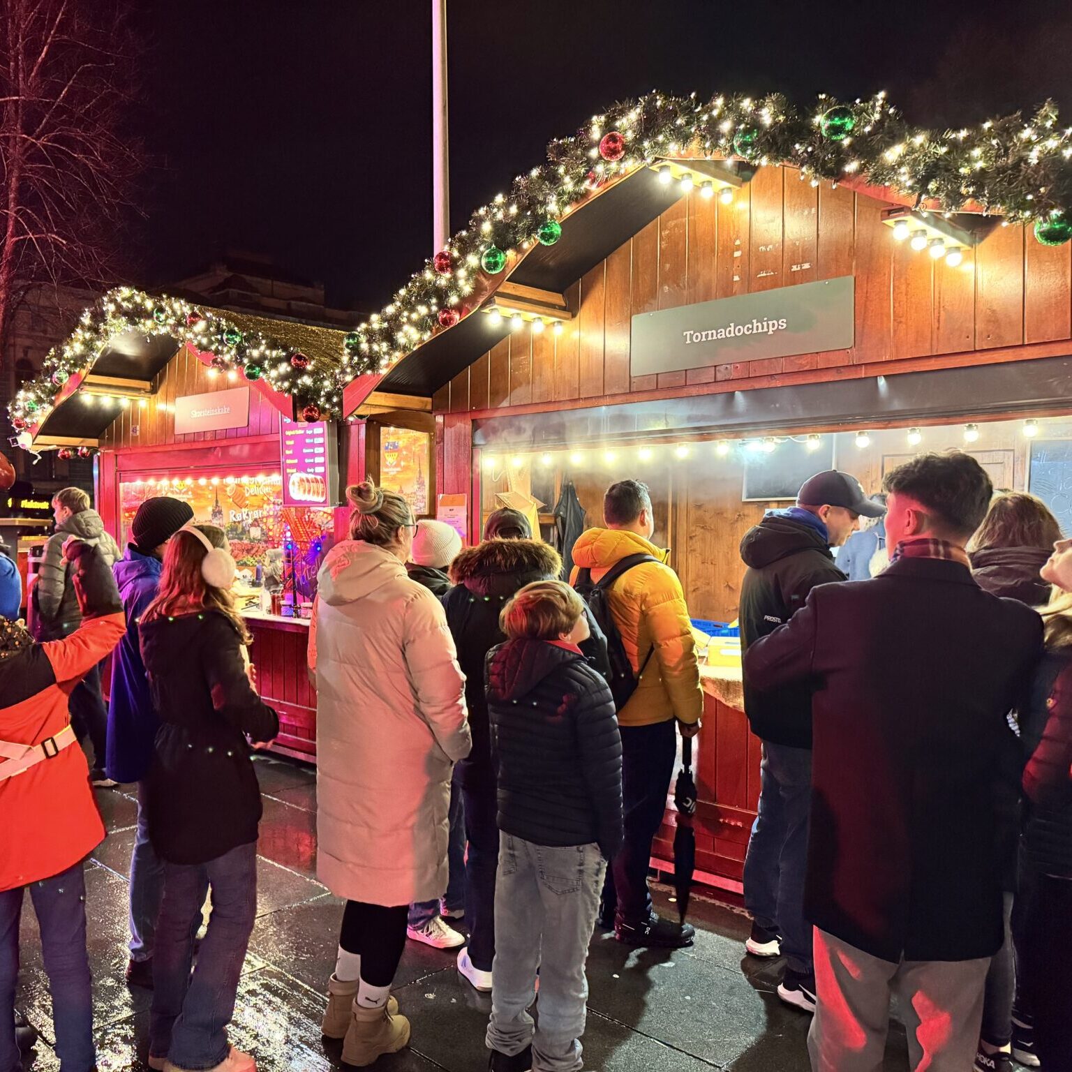 Opplev ekte julestemning med grillet bratwurst og krakauer toppet med smeltet sveitsisk raclette – en smakfull førjulsopplevelse som varmer i vinterkulden!